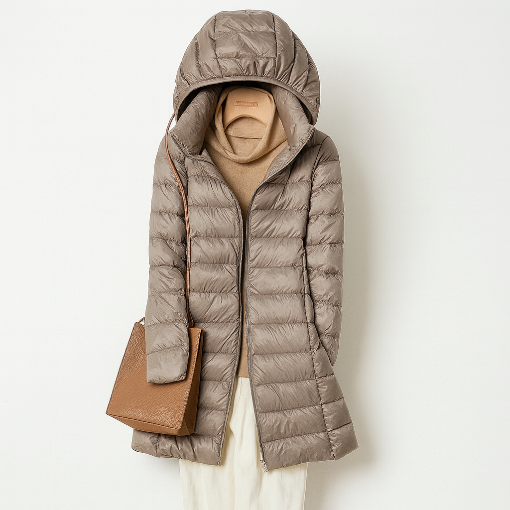 Den ultralätta dunfyllningen omfamnar dig som en varm kram, samtidigt som jackan andas stil, självförtroende och skandinavisk enkelhet.